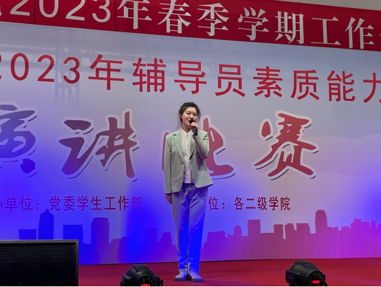 我院3名辅导员在本次演讲比赛中取得优异成绩,进一步锤炼了辅导员的能力水平,增强了辅导员工作的使命感与责任感,辅导员们纷纷表示将继续以饱满的热情投身到学生管理与服务工作中,提高政治站位,为党育人,为国育才,积极探索服务育人新举措,弘扬主旋律,传播正能量,为学校发展贡献自己的青春力量。