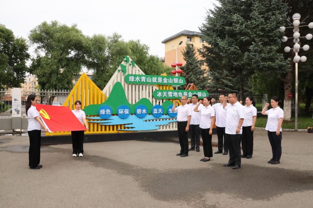 随后,全体党员到室外面对鲜红的党旗,庄严地举起右手,重温入党誓词。“我志愿加入中国共产党,拥护党的纲领,遵守党的章程……”铿锵有力的誓言在活动现场回荡,彰显了党员们对党的忠诚和为共产主义事业奋斗终身的决心。入党宣誓环节,让每一位党员都深受触动,进一步增强了党员的责任感和使命感。