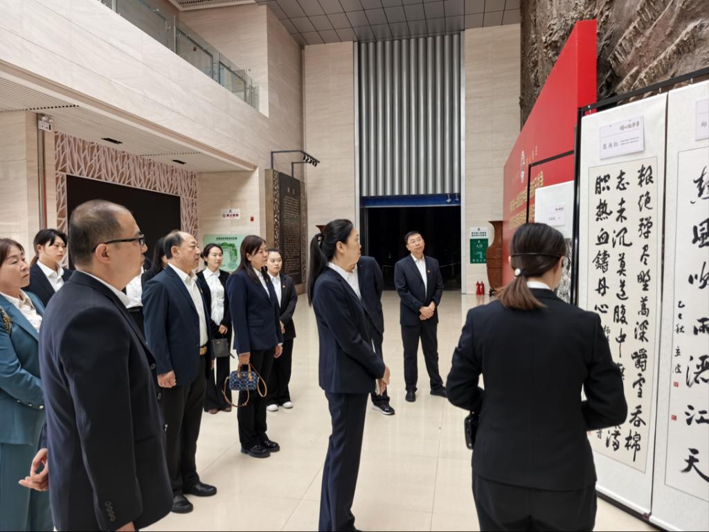 在讲解员的引导讲解下,大家首先参观了“纪念中国人民抗日战争暨世界反法西斯战争胜利80周年”书画展区。一幅幅笔力遒劲的书法作品、一卷卷生动鲜活的绘画佳作,生动再现了东北抗联将士在伊春林区浴血奋战的峥嵘岁月。参观的教师们不时停下脚步,结合画作交流感悟,从笔墨丹青中深刻感受先辈先烈在极端艰苦环境中顽强不屈的斗争意志,进一步深化了对中国共产党在全民族抗战中发挥核心引领作用的认识。