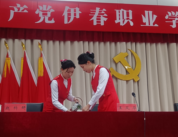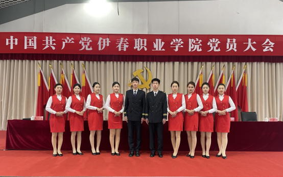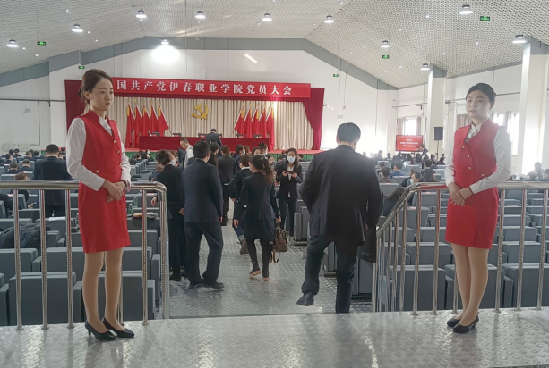 2023年3月19日,中国共产党伊春职业学院党员大会隆重召开,旅游商务学院选派10名志愿者为大会提供礼仪服务。