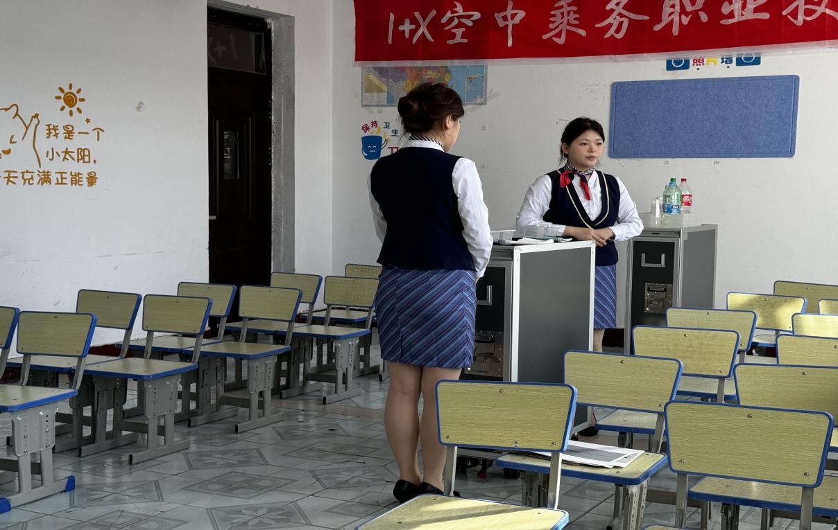 1.校内实训:建有功能完备的校内实训室,全面覆盖空乘专业各核心技能训练需求,为学生岗位实操能力培养提供坚实保障。其中,空乘职业形象塑造实训室配备专业化妆台、空乘专用化妆套组、职业发型定型工具、空乘制服试穿架及全身镜等设备,开展航空业标准职业妆容打造、专业发型设计、制服穿搭与仪态搭配训练,帮助学生掌握符合民航行业规范的职业形象管理技能;空乘形体训练实训室依托专业形体把杆、空乘服务仪态训练垫、全景落地镜及多媒体教学设备,开展民航标准站姿、客舱服务坐姿、机舱走廊行走姿态、服务手势规范等专项训练,助力学生养成符合行业要求的优雅职业举止风范;此外,还设有空乘服务礼仪实训室、空乘特色茶艺服务实训室、客舱花艺装饰与服务实训室,多维度覆盖空乘专业各岗位核心技能训练,切实帮助学生夯实岗位实操能力。