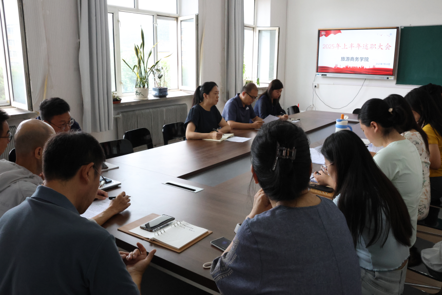 为全面总结本学期教学工作成效,梳理现存问题,明确下一阶段教学工作方向,7月16日,旅游商务学院教学工作总结大会在11号教学楼422室召开,全体教师参加了会议,会议由院长赵莉莉主持。