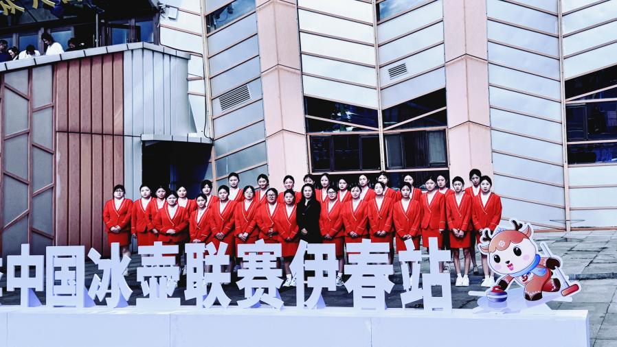 9月6日,伊春职业学院旅游商务学院教师王廷带领30名学生,在2025-2026赛季中国冰壶联赛伊春站开幕式中提供了专业礼仪服务。