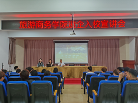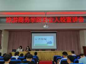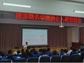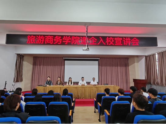 为深入贯彻落实毕业生促就业专项行动,为2021级学生实习就业提供更多优质岗位选择,旅游商务学院于6月20日举办促就业系列行动——企业入校宣讲会,共邀请5家企业入校进行宣讲。旅游商务学院副书记副王宝才、2021级辅导员刘佳、辅导员王宇童以及130多名学生参加宣讲活动。