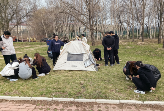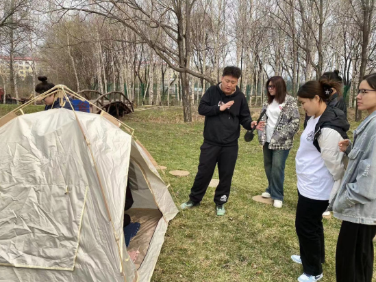为提高学生户外知识素养,增强户外技能,4月24日,旅游商务学院2022级森林生态旅游与康养专业学生于伊春市伊美区木雕园开展了户外帐篷搭建实践课程。