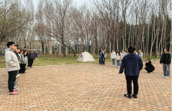 为调动大家对户外旅游学习的积极性,学习开始前,王森老师先组织了学生开始户外团建小游戏,挑选了一名同学进行游戏组织实践体验。