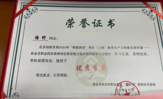 2024年8月,“职教国培”项目“三绿”新质生产力助推发展质量——林业类职业院校教师绿色教育能力提升培训班在北京开班。本次培训由北京林业大学社会服务和综合研究部牵头、继续教育学院承办,旨在提升林业类职业院校教师的绿色教育能力,推动林业职业教育的高质量发展。