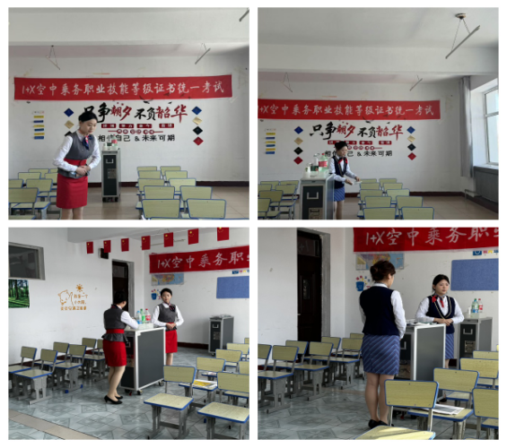 为深入贯彻《国家职业教育改革实施方案》精神,积极推进“1+X”证书制度试点工作,旅游商务学院于11月30日成功组织了高速铁路客运服务、空中乘务等专业共计65名考生参加空中乘务职业技能等级证书(初级)考试。