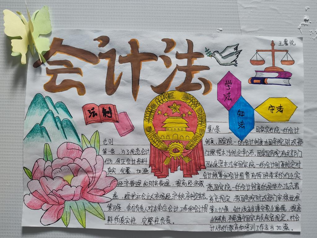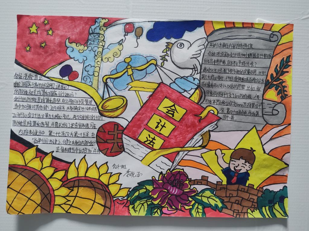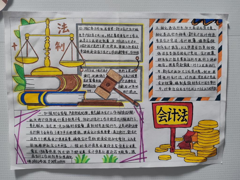 在梁老师的组织下,会计专业学生开展了手抄报绘制活动。通过手抄报绘制,学生们不仅巩固了所学知识,还加深了对《中华人民共和国会计法》的理解和应用。活动现场气氛热烈,同学们积极参与,收获颇丰。