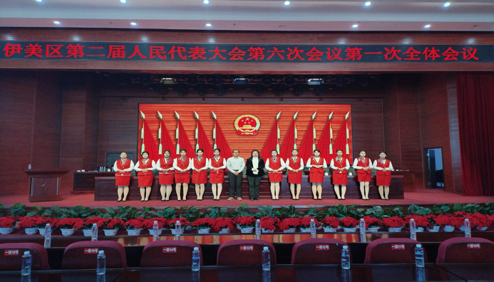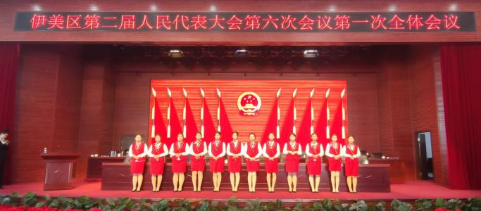 为进一步强化学生社会实践能力,提升学生社会服务意识,培养学生礼仪服务的专业素养。旅游商务学院在寒假期间,积极组织学生为我市党政部门和企业单位进行礼仪服务,1月8日,我院12名礼仪学生在院长赵莉莉、副书记王宝才和辅导员姚方杰老师的组织带领下,为伊春市伊美区第二届人民代表大会第六次会议第一次全体会议提供礼仪服务.