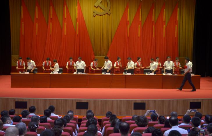 6月28日下午,16名礼仪队成员准时来到会场进行走场与训练。为了确保颁奖仪式每一个环节有序进行,成员们穿着统一的制服,一遍遍进行彩排练习。“能在建党百年之际,为大会担任礼仪工作,是一种光荣与肯定,一定要全力做好。”一位礼仪队学生说。