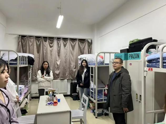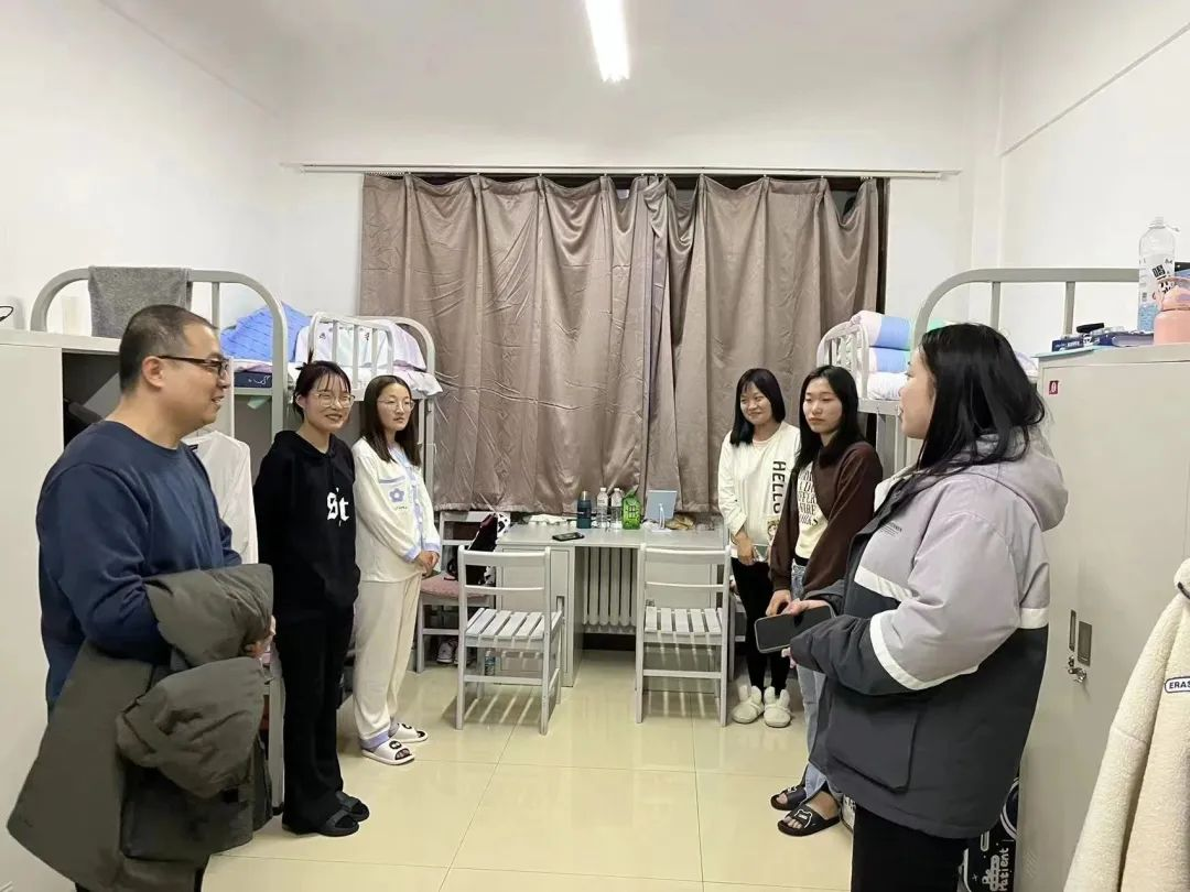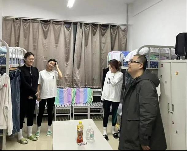 新学期,新气象。为做好常态化的学生管理服务工作,全面了解学生返校后的学习、思想、生活状况,切实解决同学们的困难与诉求,提高同学们的安全意识,消除安全隐患。3月3日晚,旅游商务学院副书记王宝才、辅导员刘佳、刘婷、21级学生干部林红玉一同走访学生寝室。