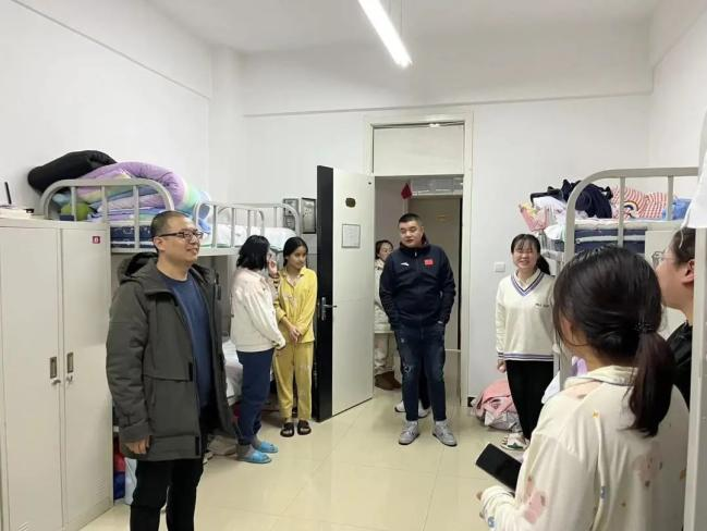 在走访寝室过程中,三位老师与同学们亲切交谈,倾听同学们的心声,询问了同学们的诉求和在返校过程中遇到的问题,嘱咐同学们尽快调整心态,及时调整生活作息,在寝室注意用电安全。同时,鼓励同学们养成良好的学习、卫生和文明习惯,加强身体锻炼。