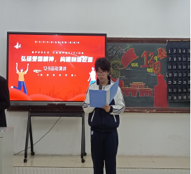 高举一二·九火炬,传承青春活力。为增强大学生爱国爱党情怀,提升民族自豪感,展现当代大学生良好的精神风貌。我院于12月9日举办以“弘扬爱国精神,构建和谐校园”为主题的演讲比赛。