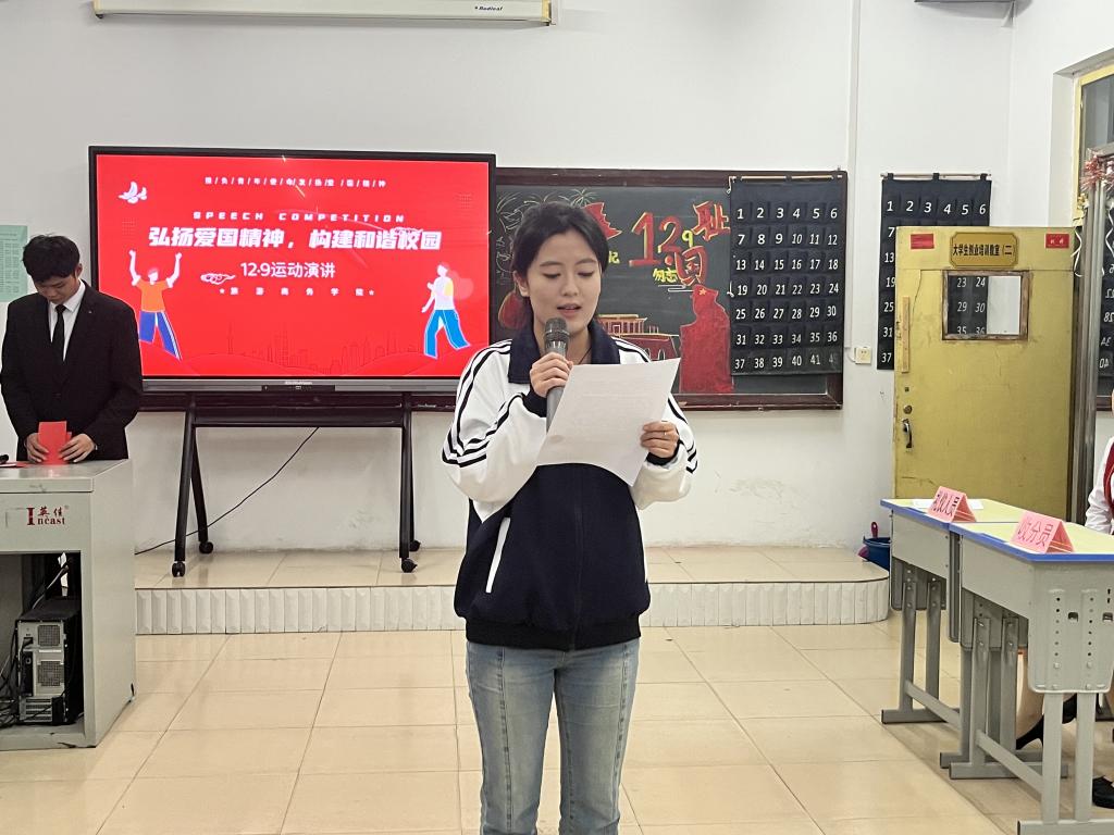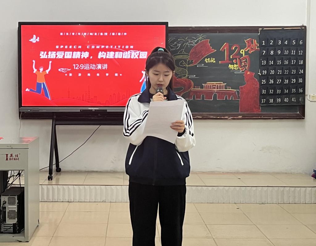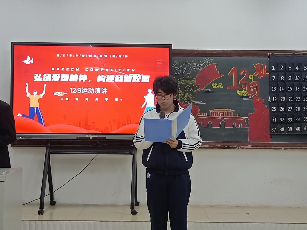 高举一二·九火炬,传承青春活力。为增强大学生爱国爱党情怀,提升民族自豪感,展现当代大学生良好的精神风貌。我院于12月9日举办以“弘扬爱国精神,构建和谐校园”为主题的演讲比赛。