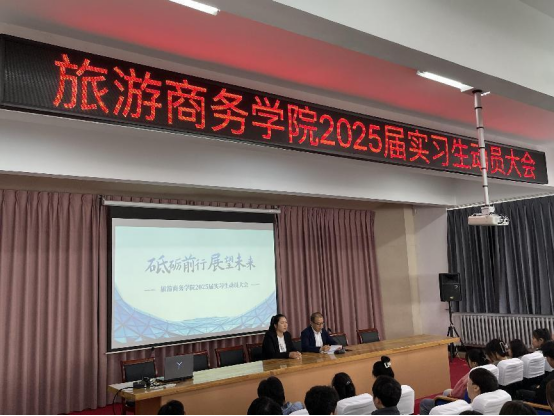 根据专业人才培养方案规定,为扎实推进我院学生实习工作,进一步提升学生职业规划意识,树立引导正确择业观和就业观,6月20日上午,旅游商务学院在图书馆一楼会议室召开了2025届毕业生实习动员大会。旅游商务学院副书记王宝才、辅导员刘婷以及2025届全体学生参加了会议。