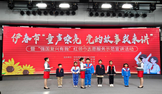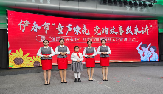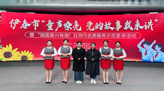 9月21日,旅游商务学院教师王廷、贾璇带领4名学生礼仪志愿者共同为伊春市“童声嘹亮 党的故事我来讲”主题活动颁奖典礼做志愿服务。