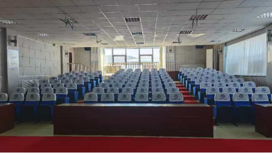 导游模拟实训室,2011年建成投入使用,2024年升级改造室内实训设备。实训室分为教师演示区、模拟导游区,配备有LED屏幕、计算机、摄像机等实训设备。