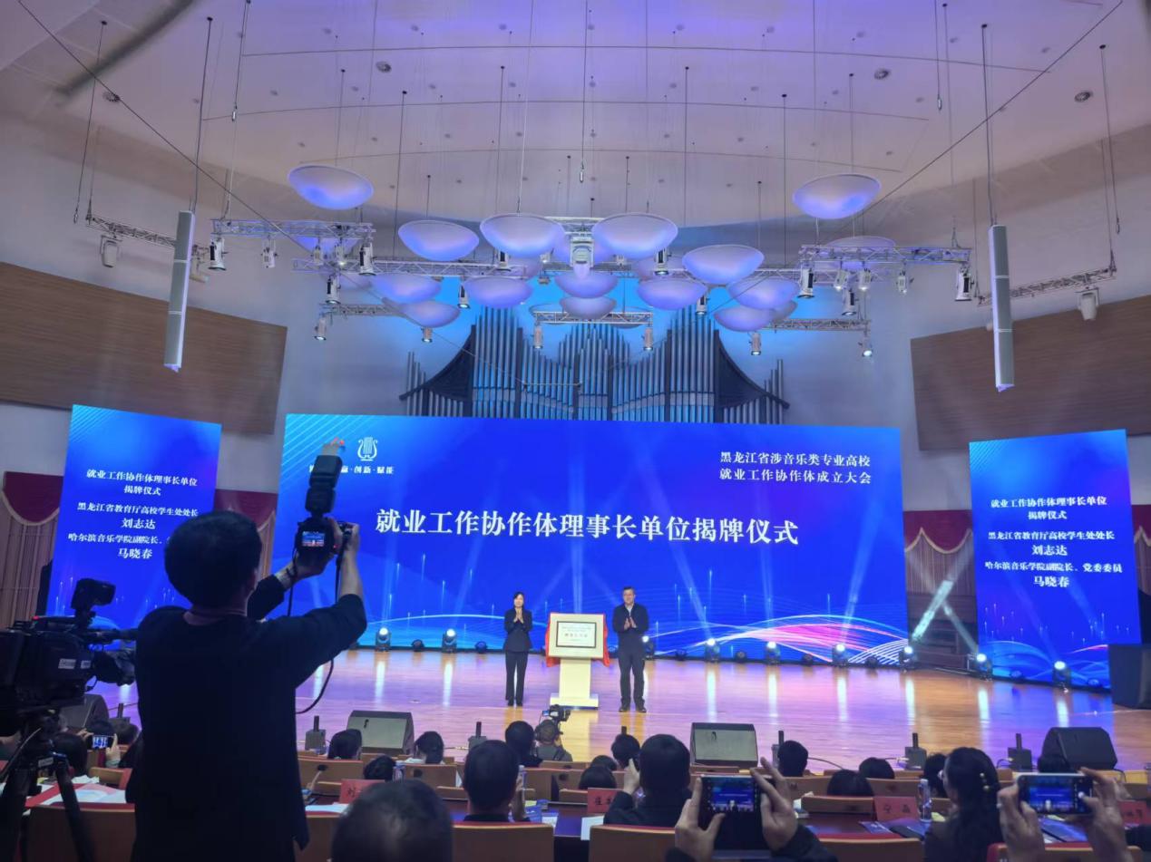11月28日,黑龙江省涉音乐类专业高校就业工作协作体成立大会成功召开,全省23所涉音乐类专业高校就业工作负责人、全国文艺院团及行业企业代表齐聚现场。大会审议通过协作体章程,举行校企合作签约与理事长单位揭牌仪式,明确以“协同、共赢、创新、赋能”为核心,构建“音乐+”跨界就业服务平台。我院代表聆听领导要求及各代表发言,深入了解协作体在拓宽就业渠道、深化产教融合等方面的关键举措,为后续工作提供参考。