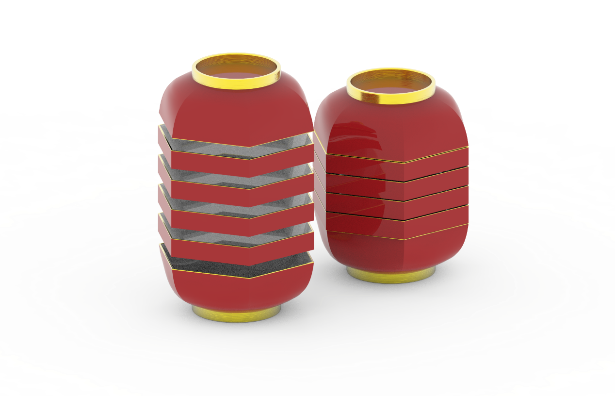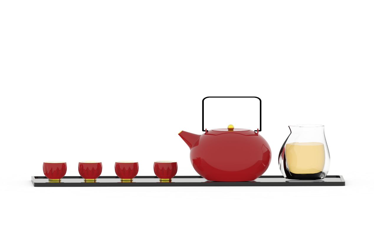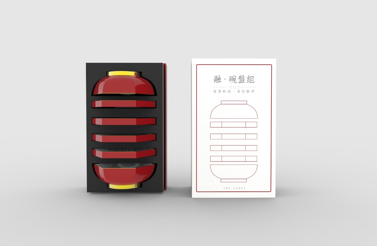 作品以“融”为核心,深挖传统灯笼团圆、喜庆的文化内涵,萃取其圆润轮廓、朱红主调等经典元素,融于餐具、茶具的功能与审美设计中。茶具复刻灯笼形态与分层结构,餐具打造圆、六角双形态系统,全系列模块化组合,兼顾实用与美学,让传统符号成为触手可及的日常美好。