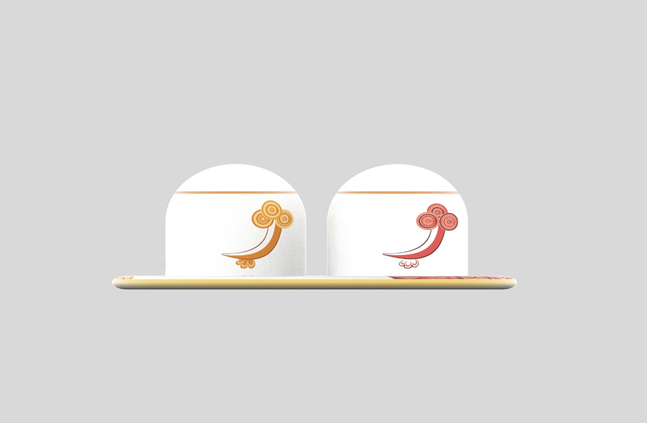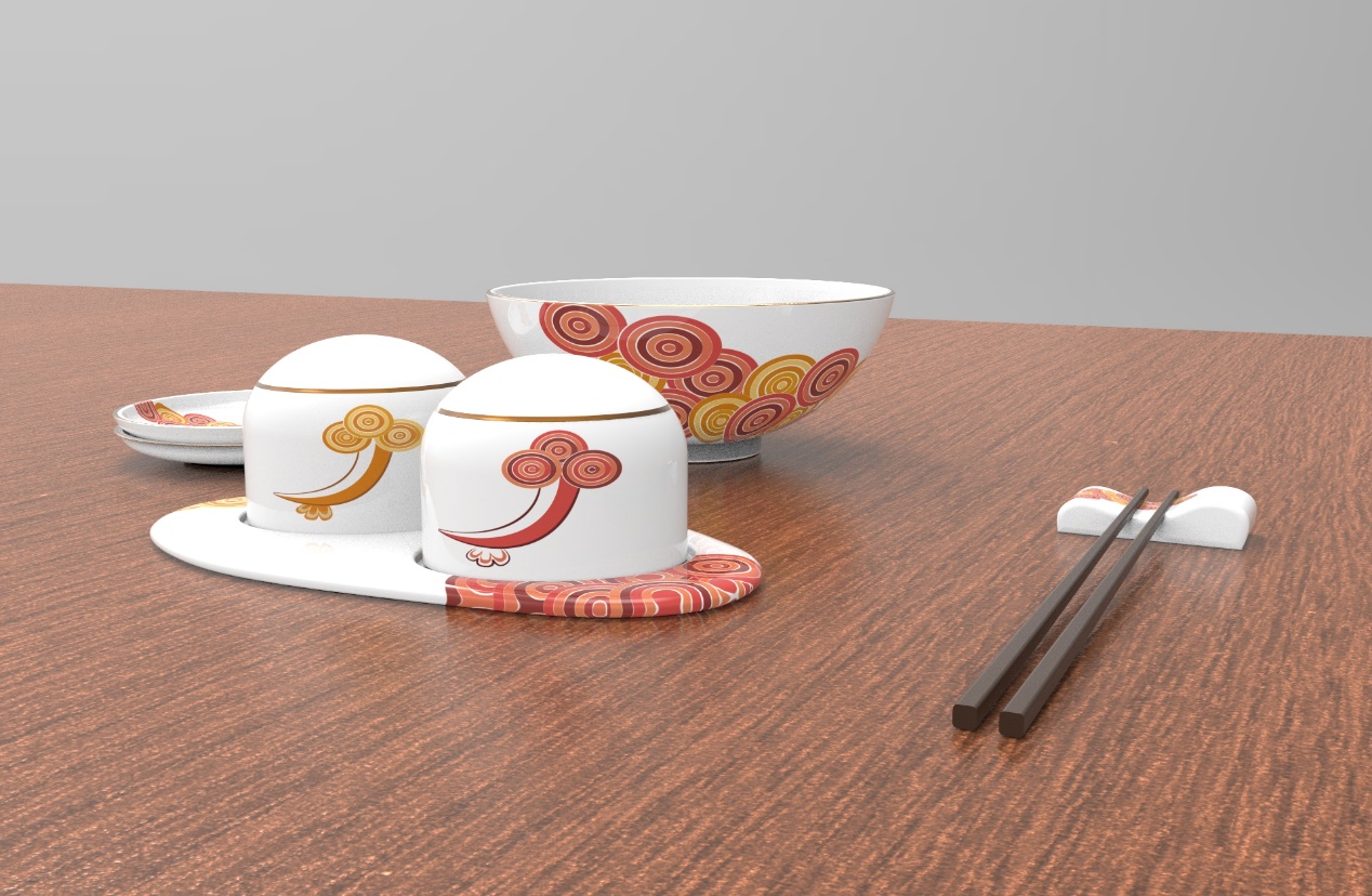 此系列以温润米白高白瓷为底,红金渐变纹样勾勒“鱼在云中游”的诗意景致,红映新春喜庆,金衬岁月华贵,描金工艺与木质筷架的搭配,让传统工艺之美与现代审美相融;调味罐、陶瓷碗、筷架等全套用餐组件,兼顾实用与美学,人性化设计适配新春团圆餐桌的多元需求,让传统吉祥符号化作触手可及的日用器物。