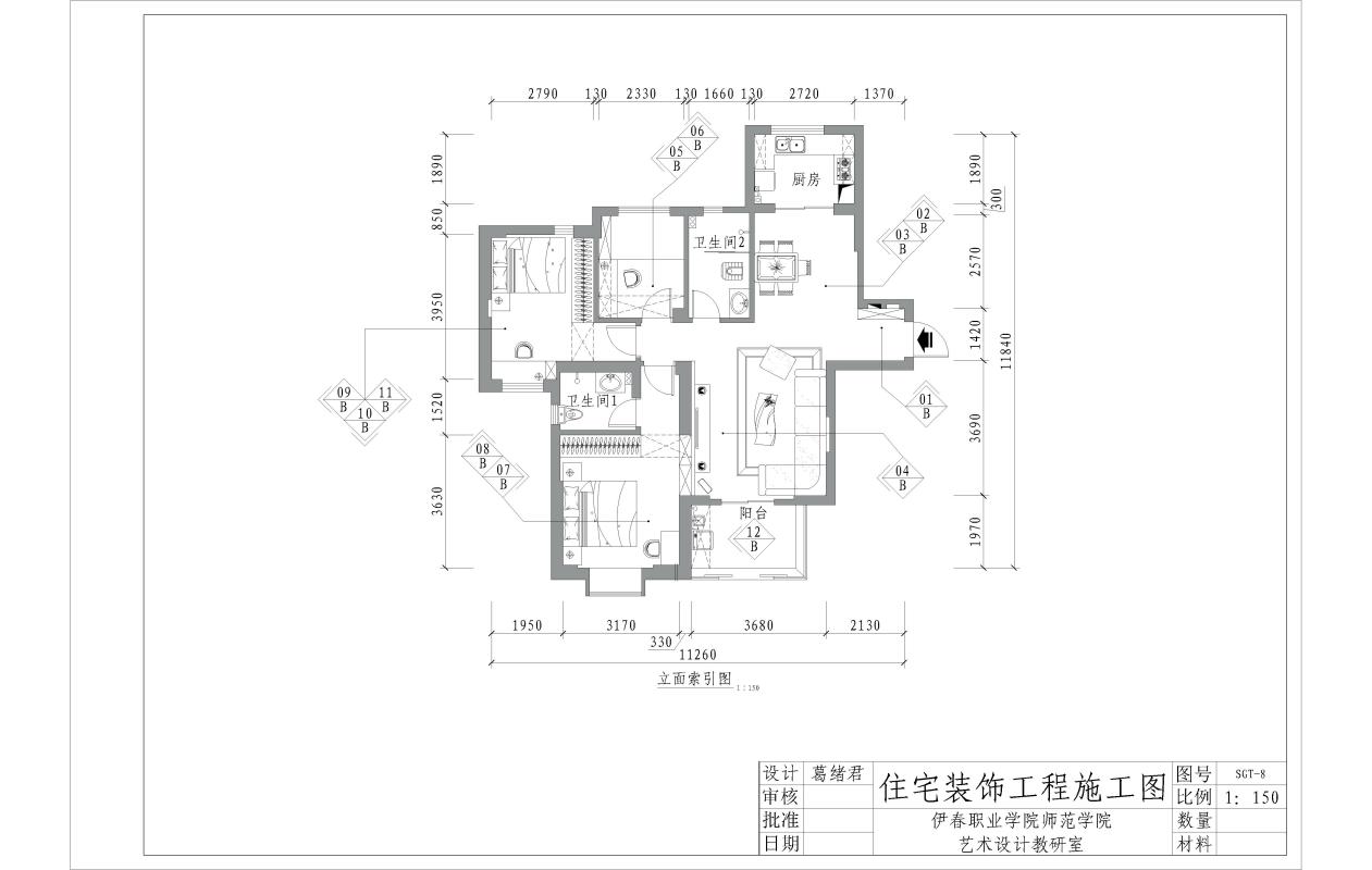 艺术设计教研室葛绪君老师始终坚守“思政领航、技能立身”的教学理念,在计算机辅助设计Auto CAD课程教学中,将思政教育元素与专业教学深度融合、有机渗透。葛绪君老师带领学生深耕Auto CAD操作技能,聚焦施工图绘制的核心要求,引导学生深刻理解精准规范的施工图不仅是专业能力的体现,更是现代装饰行业高质量发展、城市人居环境持续优化的重要基石,进而树立“图纸即责任、精准即担当”的职业认知。系统指导学生完成各类施工图设计,涵盖简约商务、生态人文、智能高效等多种风格,累计完成完整施工图作品数十套。通过实操实践与案例剖析,切实教育和激发学生精益求精、求真务实的职业素养,以及立足专业、服务社会的责任情怀,实现专业技能提升与思政素养培育的同频共振。