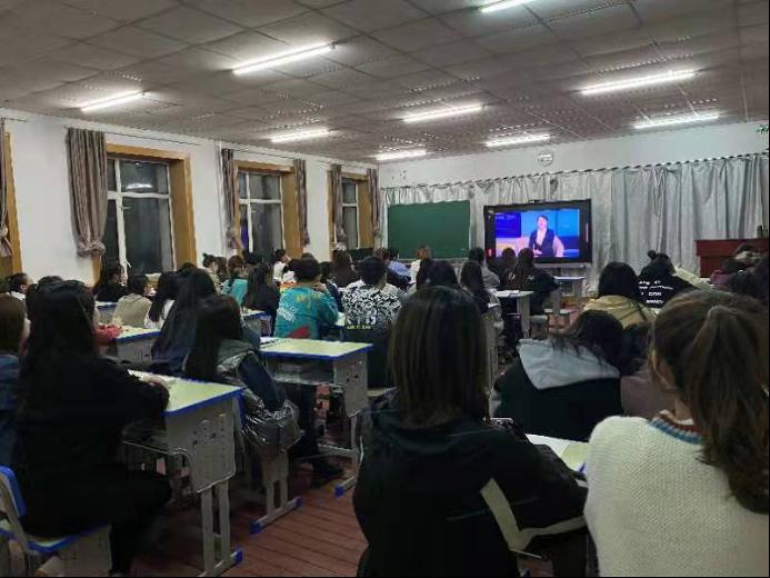 二是融学习教育进课堂,推动学生教育往“深”里走。在课堂教学中,组织学院专业教师将党的红色历史故事编入思政、音乐、美术等课堂教学内容,通过讲解党的百年历史、解析爱国主义歌曲、赏析红色历史美术作品等,加深了学生对党史、新中国史的认识和理解,用党艰苦卓绝的奋斗历程和革命志士、英雄模范的光辉事迹,激励学生增强家国情怀、苦练专业本领、报效国家人民。在课余活动中,组织开展了“提倡悦读、文馨校园”党史读书活动,采取爱国诗歌朗诵、爱国故事演讲、录制抖音视频、晚自习前演唱一首红歌等多种方式,进一步增强了广大学生知党恩、跟党走的坚定性,营造了浓厚的爱党、爱国、爱社会主义的教育氛围。