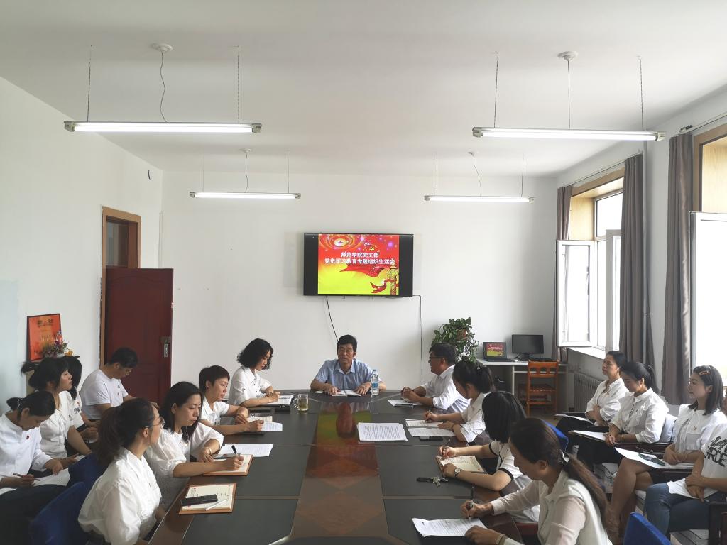 按照伊春职业学院《关于召开党史学习教育专题组织生活会的通知》要求,师范学院党支部于7月8日上午召开党史学习教育专题组织生活会,会议由师范学院党支部负责人王海峰主持,学院党委委员、纪委书记张林生同志出席会议,师范学院党支部全体党员参加会议。