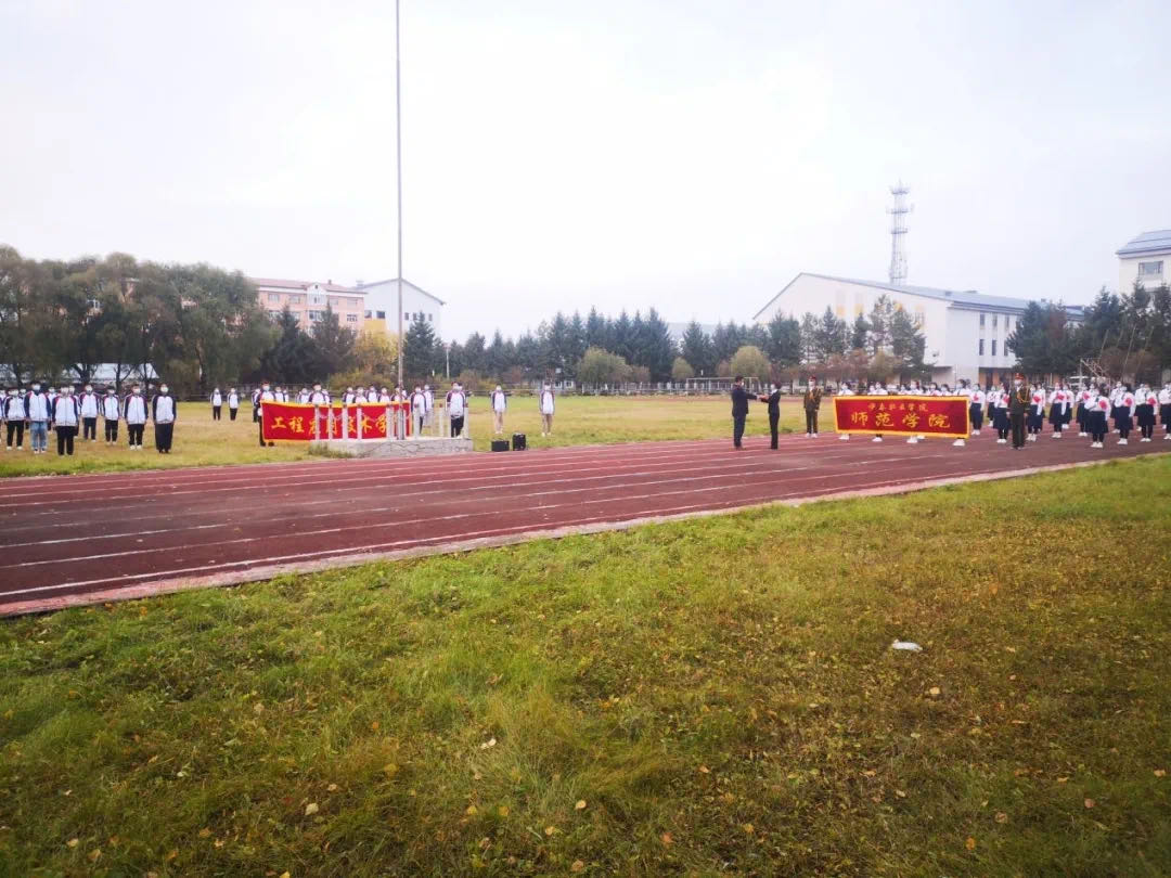 当天下午5时,师范学院和工程学院在降旗后还举行了交接仪式。