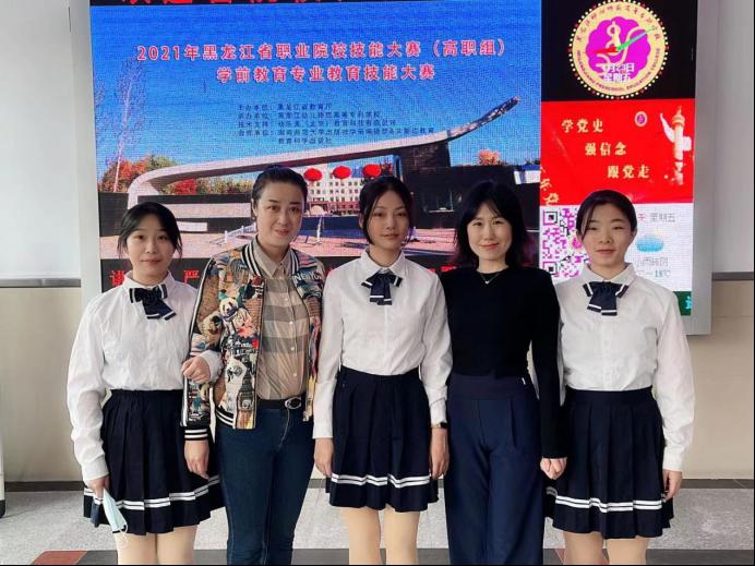 4月23-24日,2021年黑龙江省职业院校技能大赛(高职组)学前教育专业教育技能大赛暨国赛选拔赛在黑龙江幼儿高等师范专科学校举行。经过两天激烈的比拼,师范学院学前教育专业李润华、刘欣然、贺敬雅三名同学组成的伊春职业学院代表队荣获团体三等奖,邱微微、刘瑾两位教师获优秀指导教师奖。