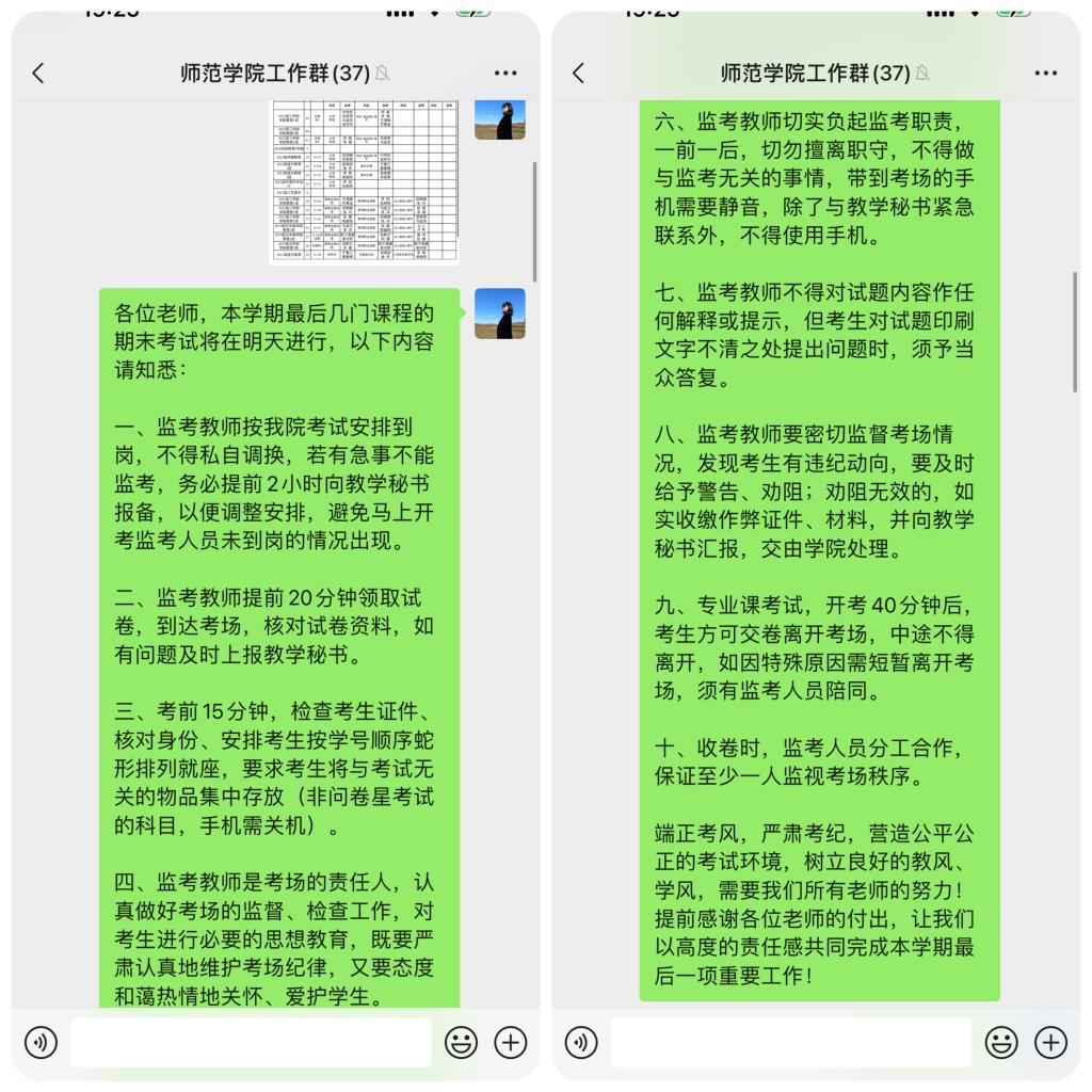 2022年12月7日至10日,师范学院2022-2023学年度第一学期期末考试工作圆满完成。考前,我院线上召开考前工作会议,副院长邱微微就考务工作提出具体要求,确保考务工作顺利进行。