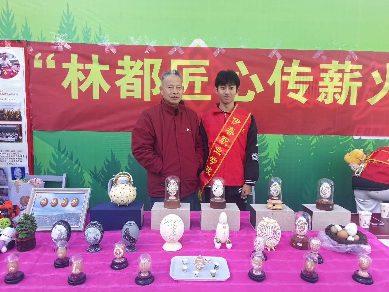 活动现场设在学生服务中心广场,氛围热烈而鲜活。我校非遗传承基地精心组织了伊春本土多项国家级、省级非遗项目参展,包括以“林都文化”为特色的木雕技艺、展现林区传统智慧的桦树皮制作技艺等。每一项非遗项目都设有专属传承工作室展区,非遗传承人亲自介绍讲解,通过“实物展示+技艺演示+现场教学”的模式,让师生近距离感受非遗的独特魅力。师范学院艺术教研室教师还结合专业教学,现场为学生讲解非遗技艺的艺术价值与传承意义,引导大家从专业视角理解非遗文化,引导学生积极加入我校传承工作室,在亲手触摸非遗技艺、挖掘传统故事的过程中,既能解锁木雕、蛋雕等实用技能,也能为文化传承注入青春创意,让个人成长与文化延续同频共振。