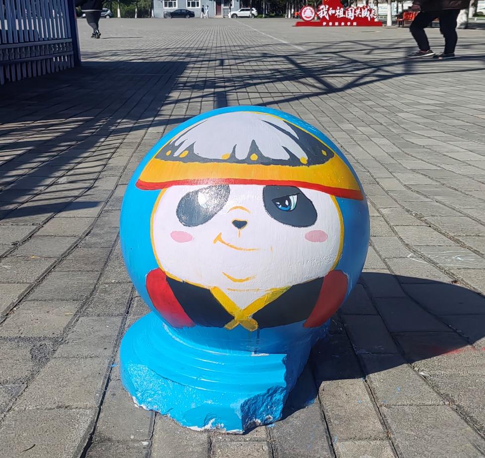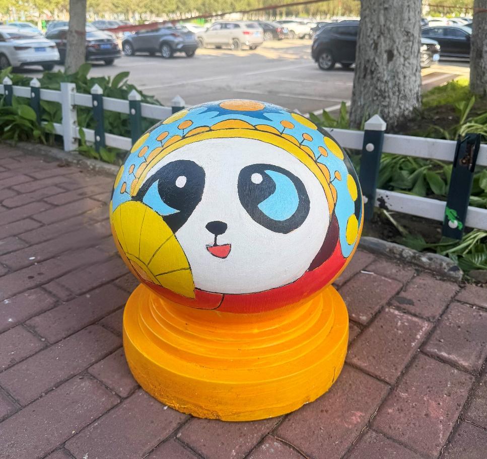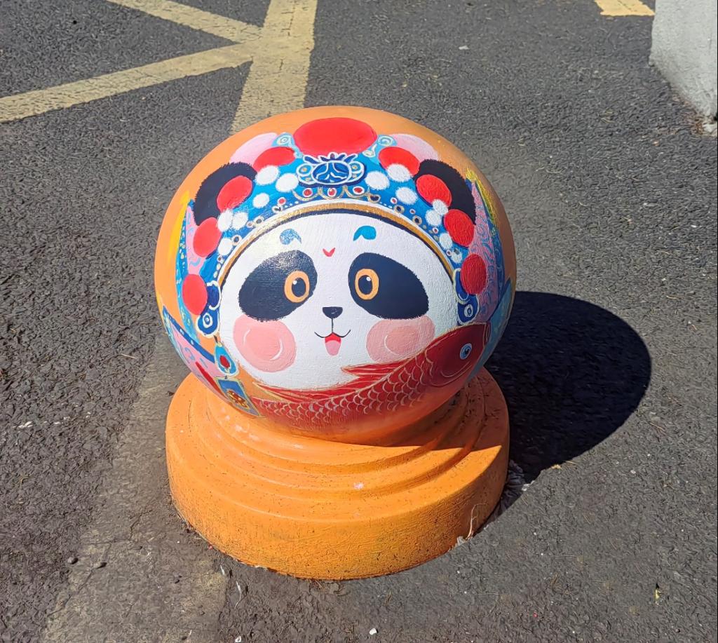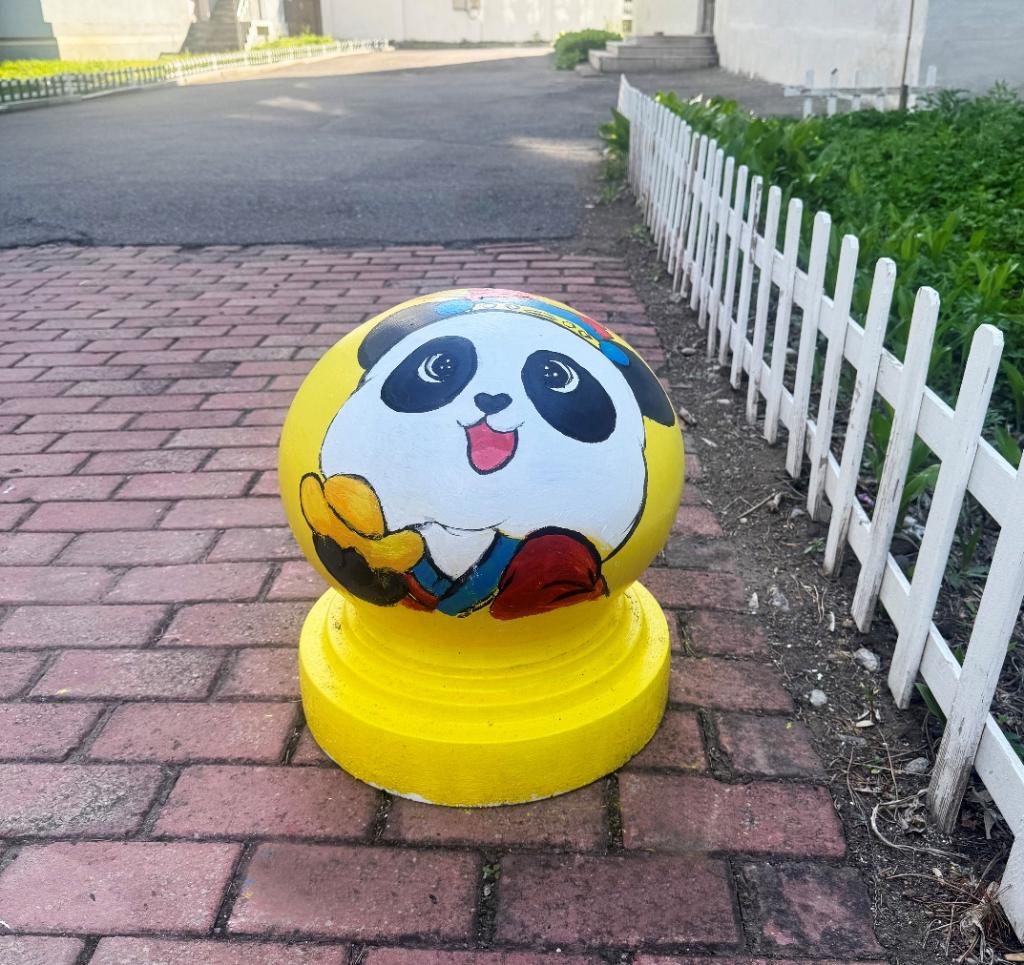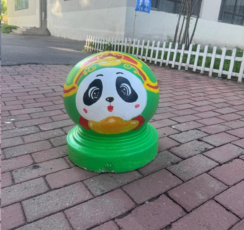 憨态可掬的熊猫形象跃然于石墩之上,学生们用画笔将熊猫的可爱与灵动展现得淋漓尽致。熊猫作为国宝,深受中国人民的喜爱,是民族情感的重要寄托。它唤起了人们对国家和民族的热爱之情,增强了民族自豪感和凝聚力,让人们在文化认同和情感共鸣中紧密相连。熊猫的形象承载着深厚的文化底蕴,如今以手绘的形式装点校园,让同学们在日常学习生活中,便能感受到传统文化的亲切与美好。