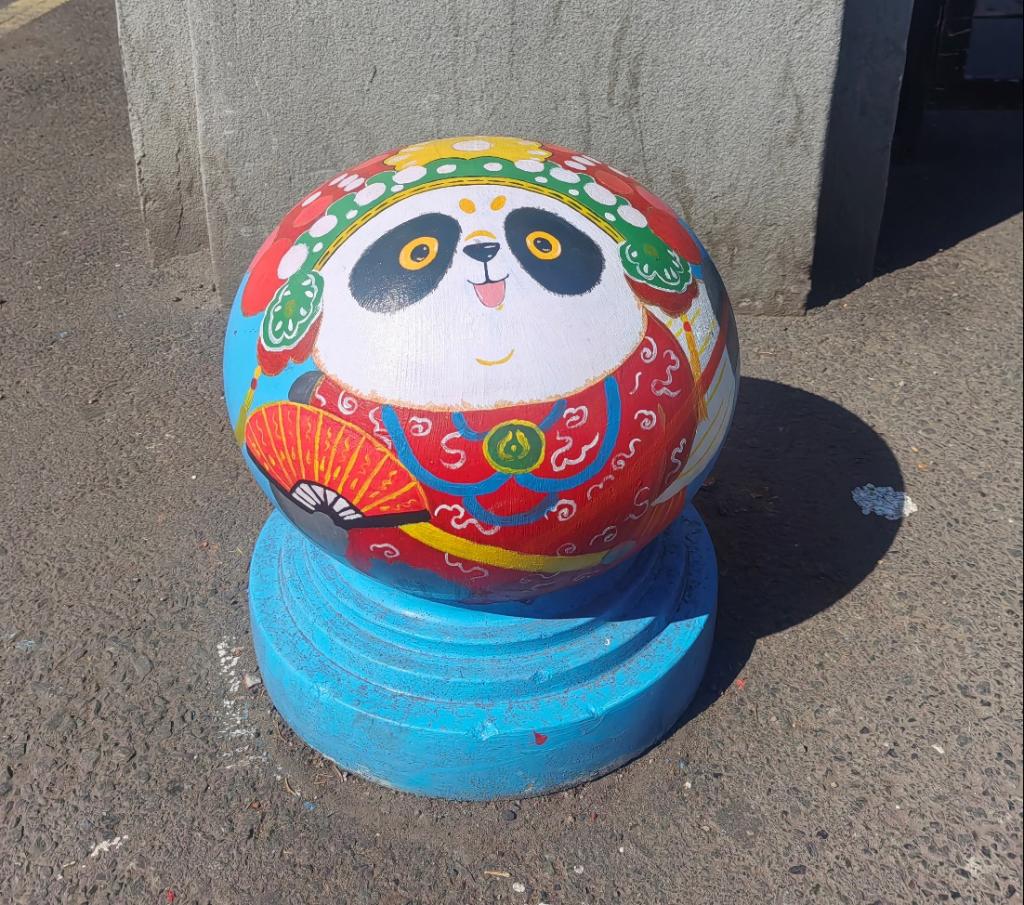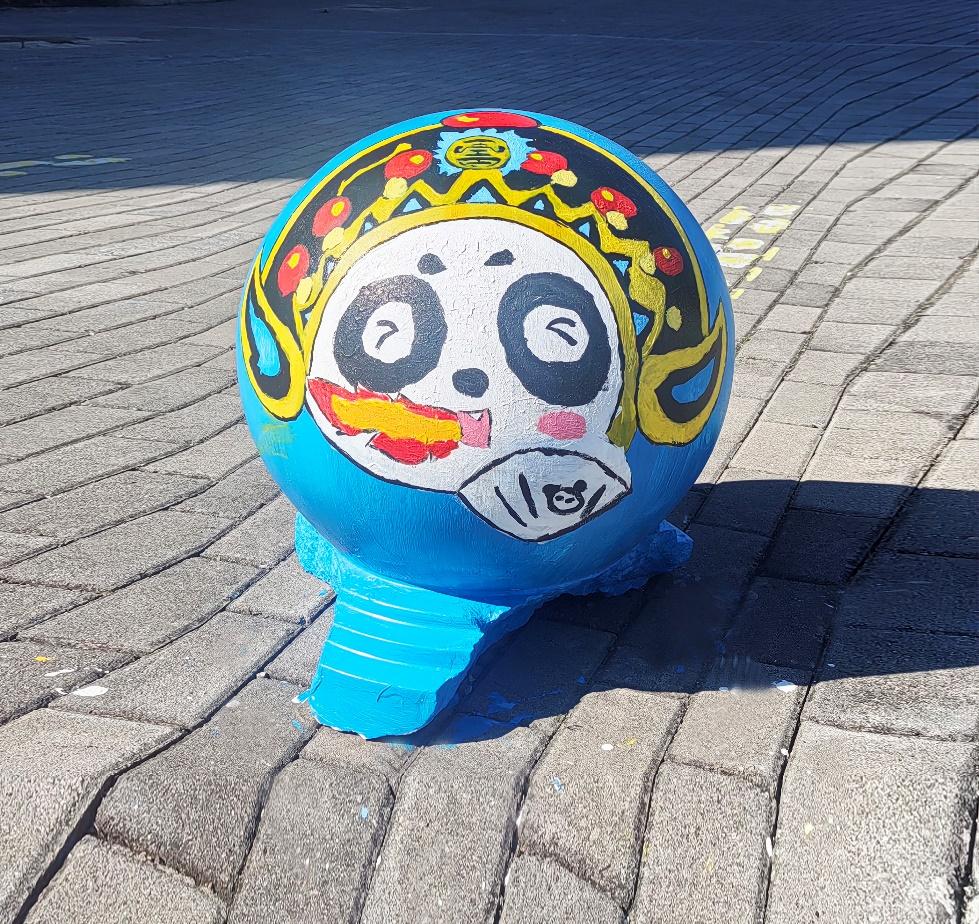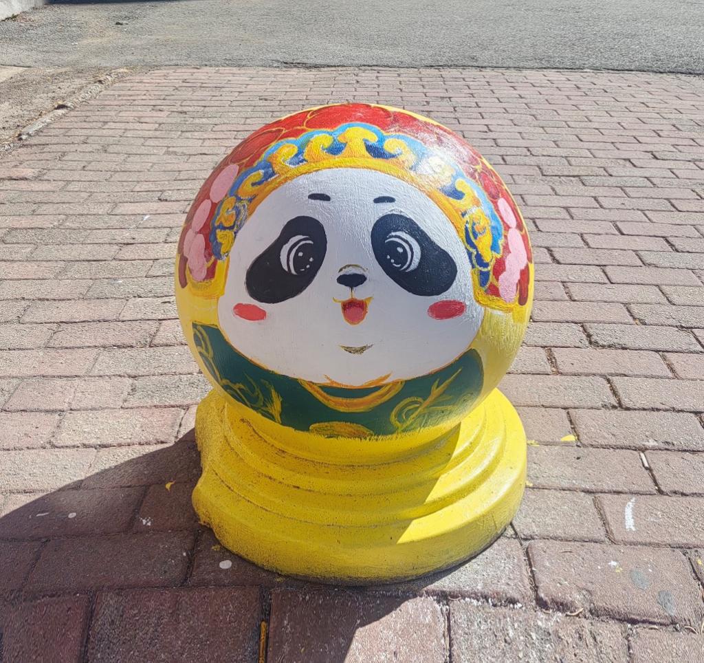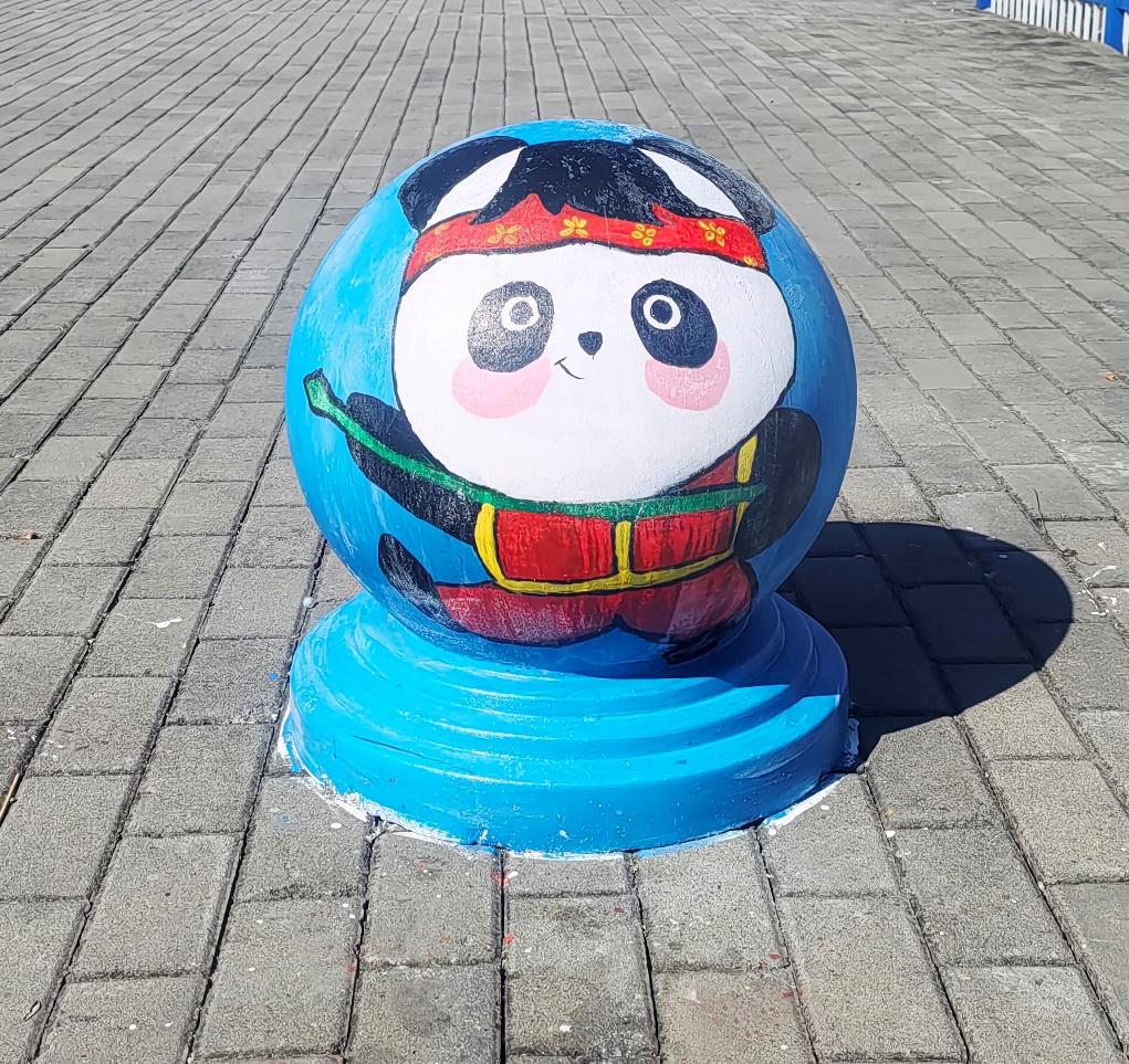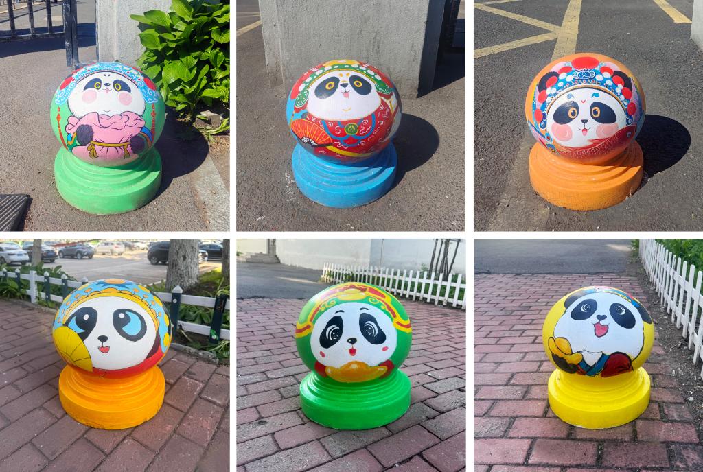 憨态可掬的熊猫形象跃然于石墩之上,学生们用画笔将熊猫的可爱与灵动展现得淋漓尽致。熊猫作为国宝,深受中国人民的喜爱,是民族情感的重要寄托。它唤起了人们对国家和民族的热爱之情,增强了民族自豪感和凝聚力,让人们在文化认同和情感共鸣中紧密相连。熊猫的形象承载着深厚的文化底蕴,如今以手绘的形式装点校园,让同学们在日常学习生活中,便能感受到传统文化的亲切与美好。