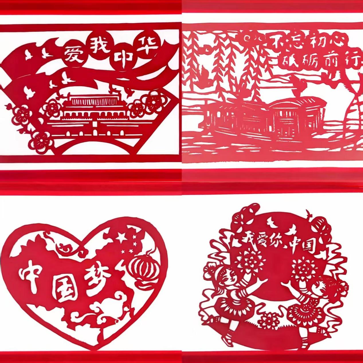 小小剪纸,承载厚重历史与滚烫信仰。在老师的悉心指导下,同学们巧手翻飞,匠心独运。南湖红船剪影破浪,仿佛带回星火初燃的庄严时刻,时刻激励我们不忘初心、砥砺前行;飘扬着“爱我中华”的鲜艳旗帜在天安门前熠熠生辉,辉映着革命先辈满怀爱国精神的峥嵘岁月;交织着华夏国土的中国梦图案庄严神圣;新时代奋斗者与锦绣山河的画卷生机盎然。一幅幅作品线条遒劲,意象鲜明,娓娓诉说着对党的无限忠诚与身为中华儿女的无比自豪。