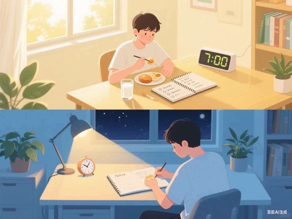 试着每天固定时间起床和入睡,避免熬夜刷手机或过度赖床。早餐时可以规划当天的学习任务,睡前花十分钟回顾完成情况,这种仪式感能帮身体快速适应节奏变化。把书桌整理干净,远离床上学习,物理空间的划分会让专注力自然提升。