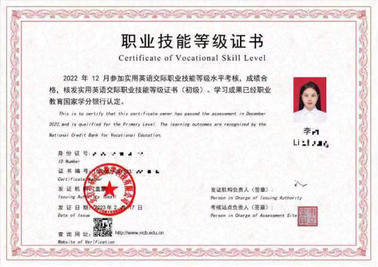 2022年下半年实用英语交际职业技能等级考试(初级)结果近期揭晓,我院共有97名同学顺利通过了考试,作为考核站点,被评为黑龙江省优秀组织奖。