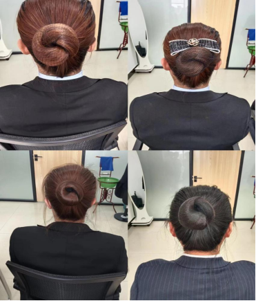 此次培训的主要内容为,窗口服务人员的服务礼仪。包括仪容、仪表,尤其是要求窗口服务人员的发型统一、整洁,符合工作要求。汪雯雯老师在给工作人员做了示范讲解后,工作人员进行了工作盘发的实操,汪老师逐一进行了指导。