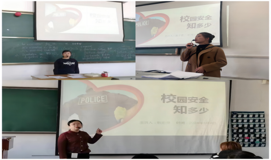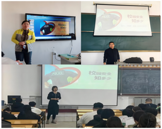 在课程中思政部教师结合了思想政治理论课教学元素向同学们介绍了在校园学习与生活中通过树立正确的人生观、价值观、世界观进而提升个人安全防范意识,形成甄别社会层面的真与假、善与恶并达到切实保护个人利益的目的。