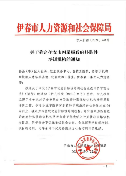 今年四月份,我校参加了由伊春市人社局组织的补贴性培训机构星级评估。在全校上下的共同努力下,我校认真组织材料,参与评审,充分展示我校在教育教学、社会服务等方面的实力与成就。经过评选,我校被评为了四星级政府补贴培训机构。