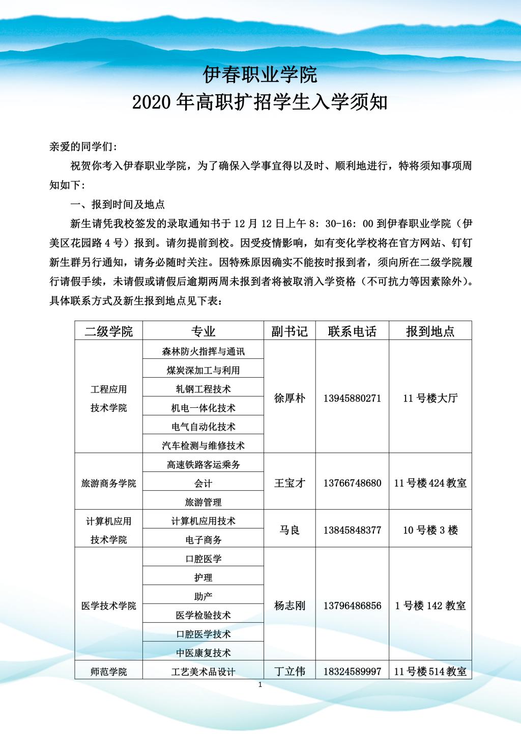 伊春职业学院2020年高职专项扩招学生入学须知(1).pdf