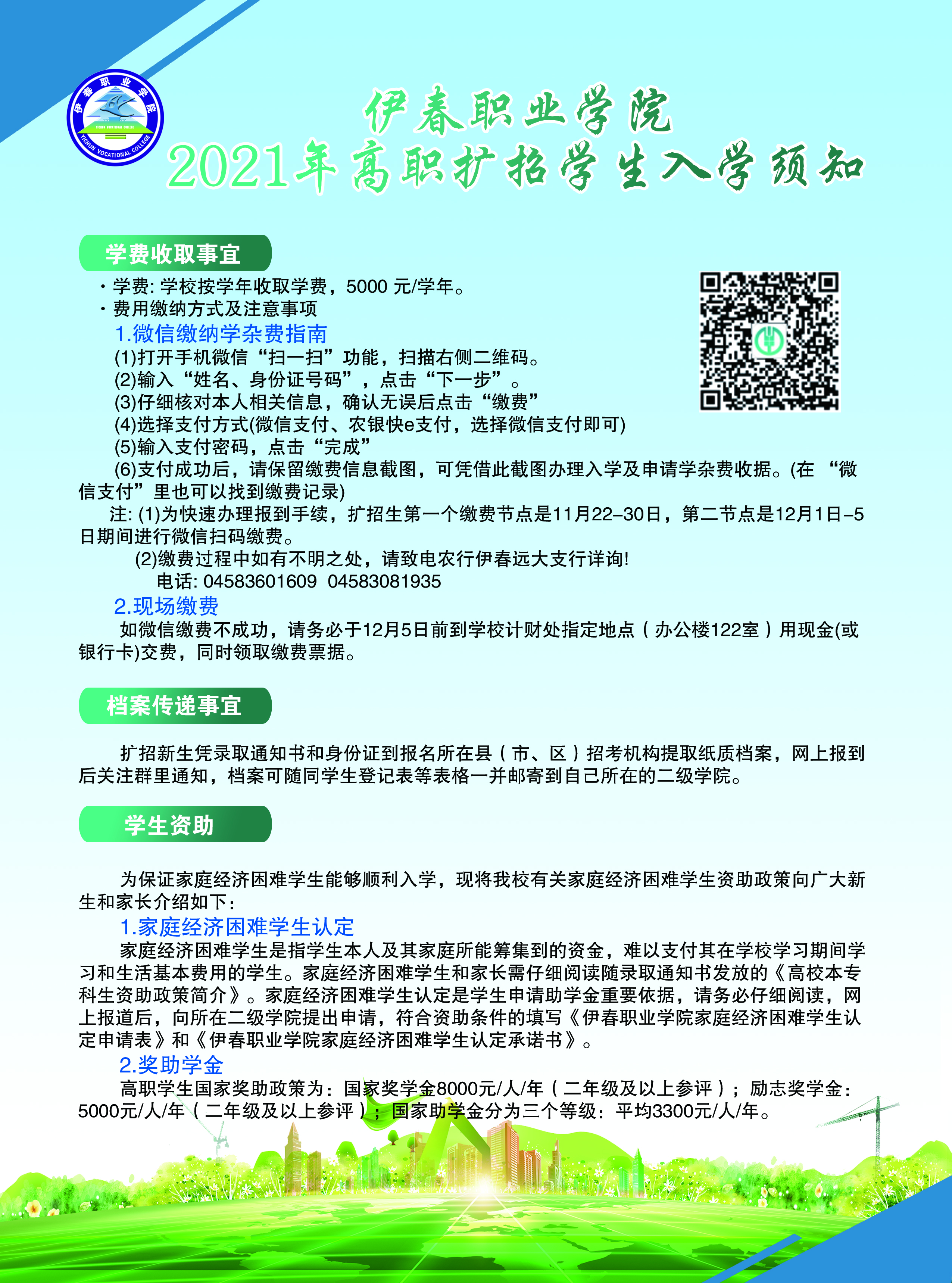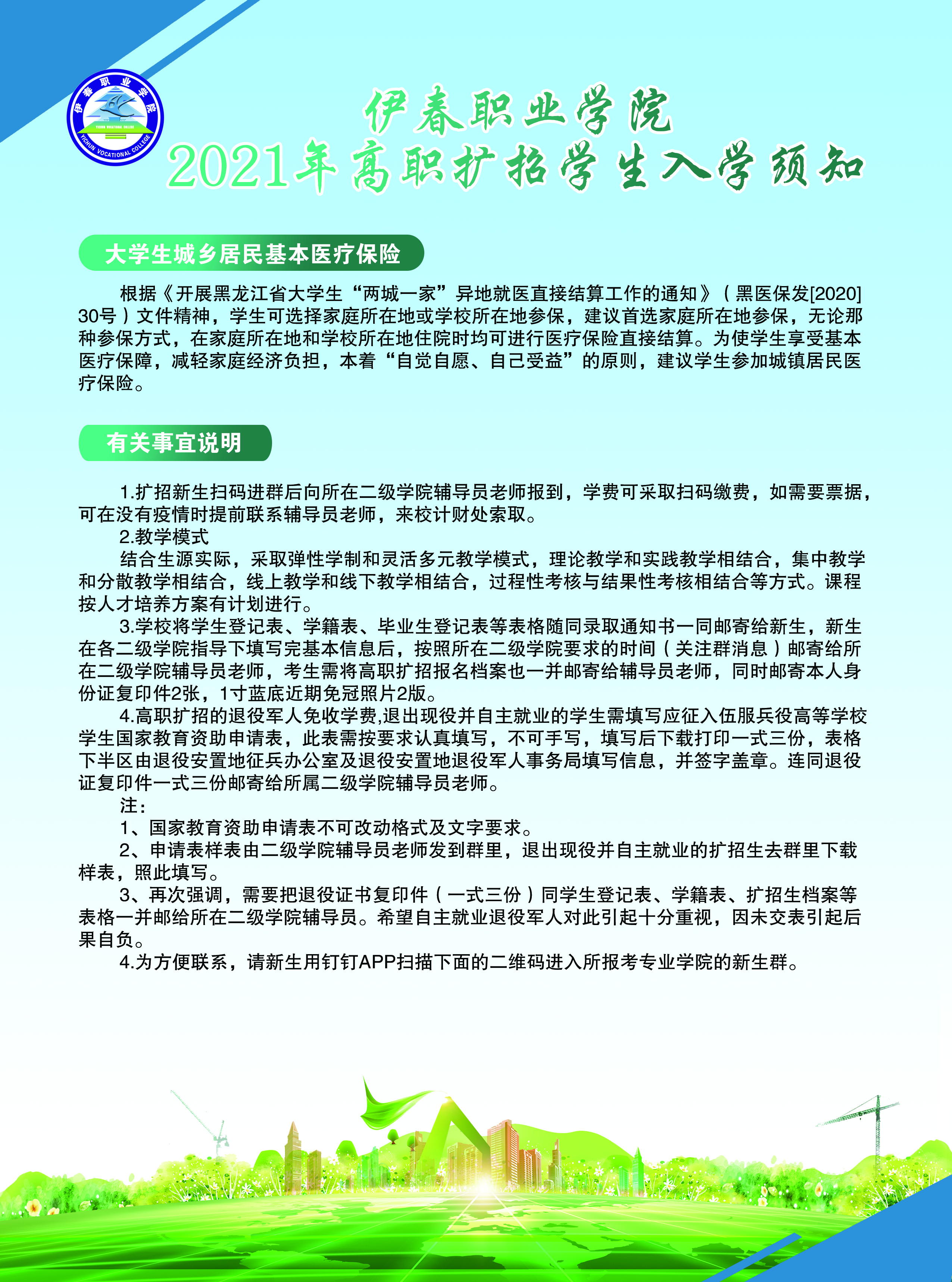 伊春职业学院2021年高职扩招学生入学须知(1)(1).docx