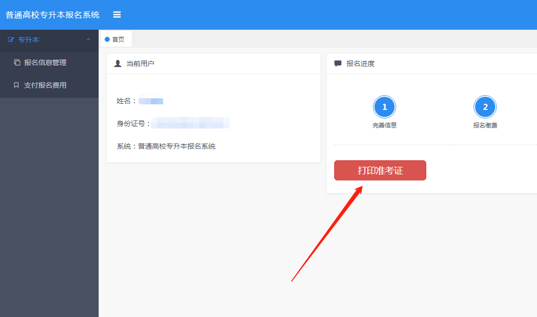 专升本准考证打印流程: