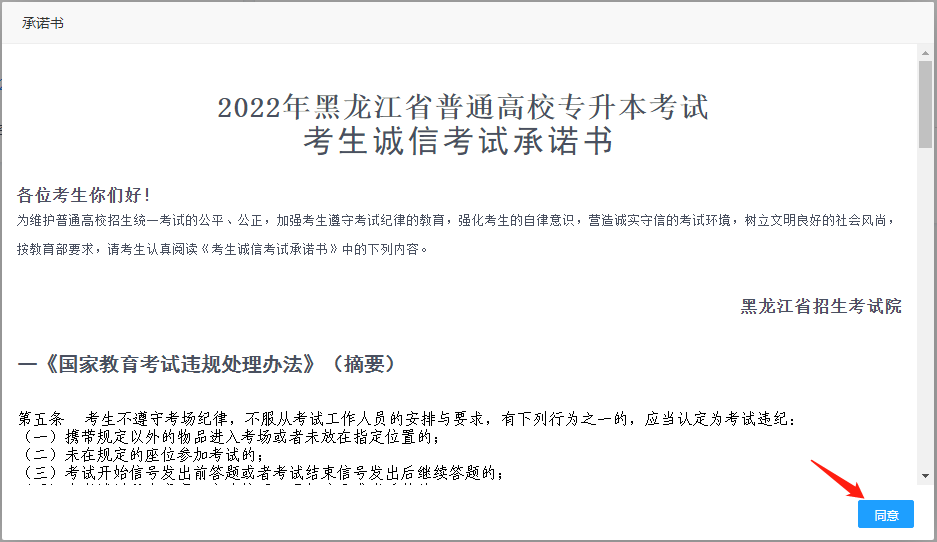 (1)进入系统后,直接点击“打印准考证”按钮,出现阅读承诺书页面。