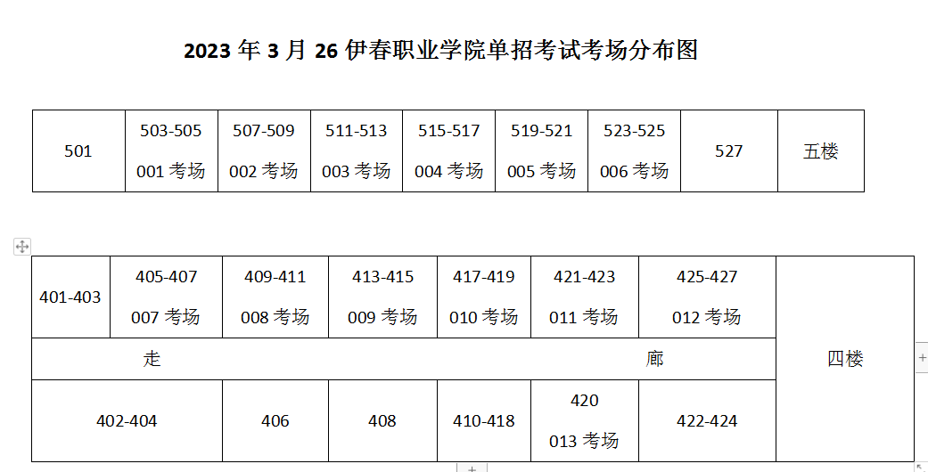 伊春职业学院单招考试考场分布图