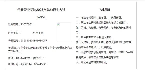 说明:准考证打印时间为2023年4月6日7时至4月7日14时,请各位考生及时打印准考证!按学校官网考试须知要求携带身份证、准考证、黑色字迹笔、2B或HB铅笔、橡皮参加考试。
