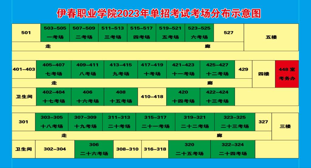 伊春职业学院2023年单招第二阶段考试考场分布示意图
