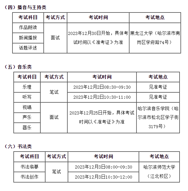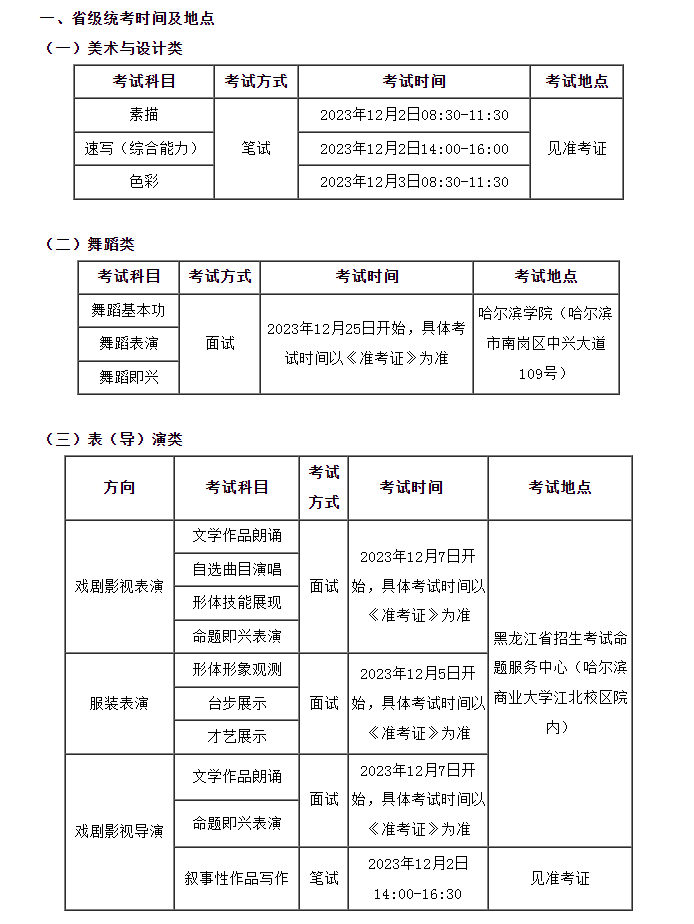 关于黑龙江省2024年普通高校艺术类专业招生考试时间地点安排及有关工作的通知