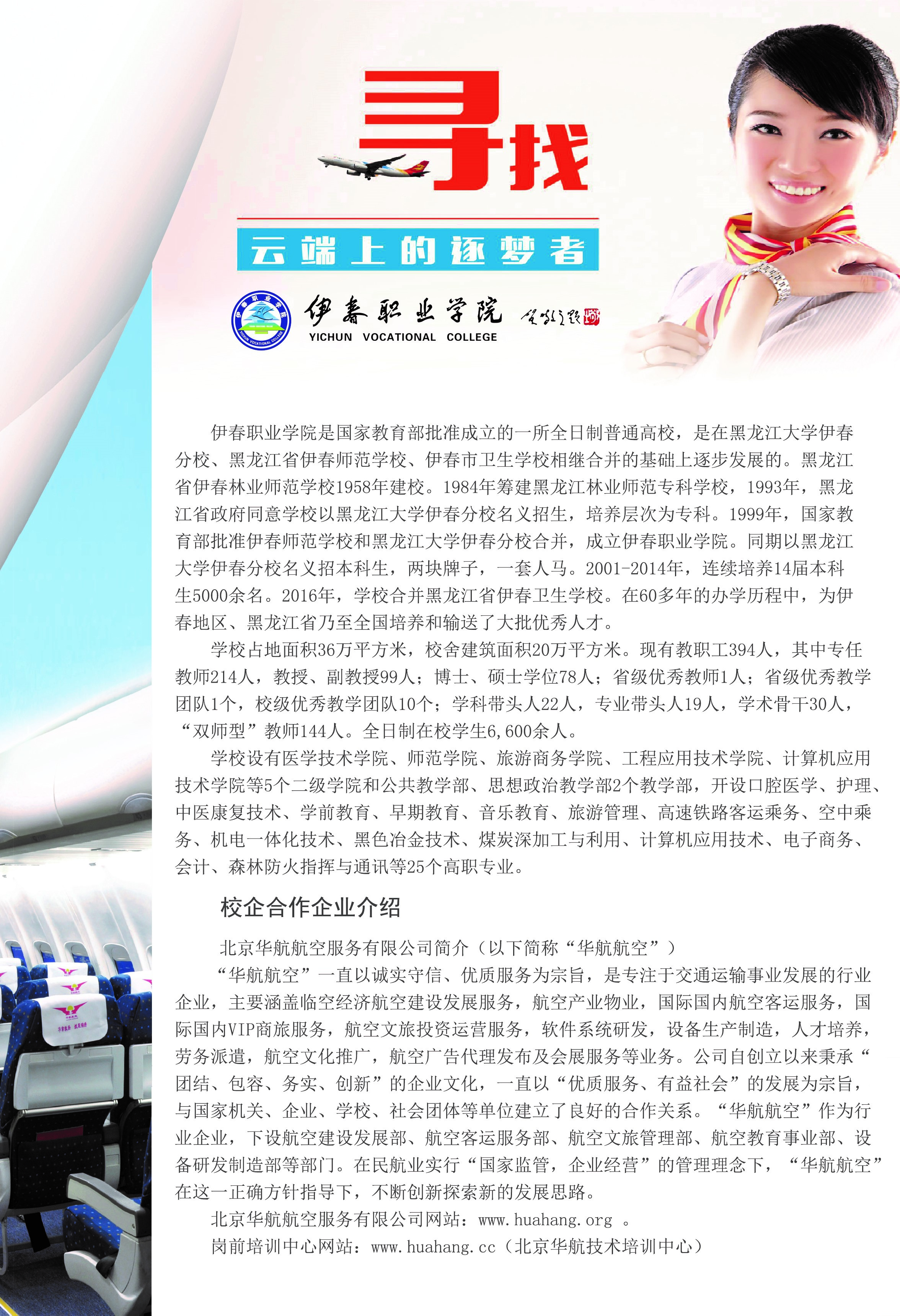 伊春职业学院-空中乘务-北京华航航空-校企合作招生简章