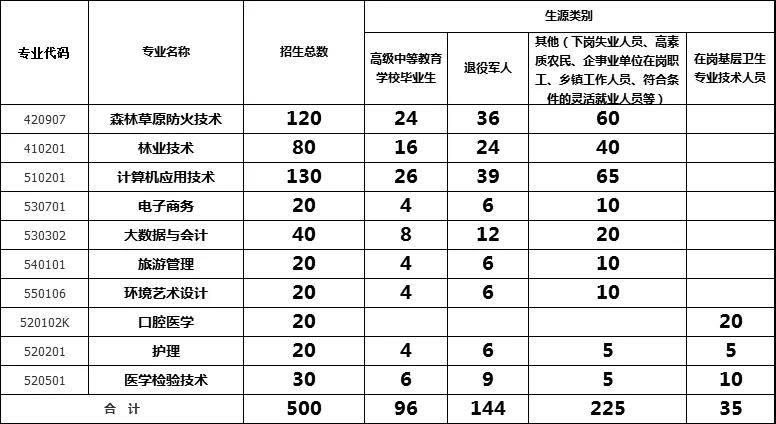 伊春职业学院2021年高职扩招分专业分类别招生计划